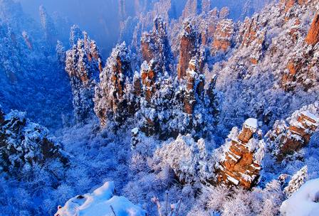 張家界三千奇峰、八百秀水,用“雄、奇、險、秀、幽”5字來概括,早已得到大眾的公認。張家界的山水,稱得上是風景山水的經(jīng)典;游張家界,則成為人生的宿愿和幸事。飽覽張家界,可謂四時皆宜:春天,是大地充滿靈氣的季節(jié),張家界此時的山水,充滿著生氣,充滿著向往,它的每一座山峰,每一道水溝,都舉著搖曳多姿的花朵,是表示對游人的歡迎,更是表達一種生命的意境;夏天,是空氣膨脹欲望的季節(jié),張家界此時的山水,充滿著遐想,充滿著誘惑,它的一草一木,一枝一葉,都滴瀉著生命的翠綠,裝飾著每一座山峰,蘊含著人生的幻想和追求;秋天,是星月喜慶豐收的季節(jié),張家界此時的山水,一樣地走向深厚,一樣地寫滿沉穩(wěn),它的山山嶺嶺,它的溝溝壑壑,在翠綠的底色中亮出火一樣的紅葉,抒寫著熱情,歌吟著成熟與奔放;冬天,是風花雪月般詩意的季節(jié),張家界此時的山水,冷峻中透著溫情,蒼茫里飽含著魄力,它的一座座石峰,它的一棵棵巖松,都是一個個冰清玉潔的世界,它們都玉樹臨風般燃燒著,引發(fā)著游客的激情,而那些冰雪覆蓋的小溪,流水在動情地吟唱,就像有情人心中的歌吟,最易撩動愛人的衷腸。我愛張家界四季的景色,但我更愛張家界的冬天,我愛在冬天里與張家界的山水對話,我愛在冬天里到張家界的山水間去暢游,去作一種思想的飛翔! 張家界的冬天并不寒冷,這主要是因為四周多高山,這里的冬季多為晴朗天氣,故區(qū)域小氣候較為溫暖,暢游張家界無須冒嚴寒之苦,又可避開歷酷暑之難。即使是雨雪天氣,因為景區(qū)是一個高出的整體平臺,小地形則是一塊盆地,所有的景觀就好比一個放大的盆景,所以在游歷觀賞的行程中,并無寒氣逼人、冷酷加身的感覺。一旦遇上陰雨天氣,景區(qū)因海拔較高,山地氣候又特別明顯,放眼望去,枝枝葉葉便都成了水晶般的世界,精靈奇巧的霧凇千姿百態(tài),笨拙憨厚的灌木清純天成。若是有雪降臨,不管大小,山上立即便會是一個白雪皚皚的世界,恰似翡翠盤中堆砌著白玉,那些巖壁上的枯枝古樹,此時又煥發(fā)青春,讓人不由得想起兩句古詩:“春來苔作葉,冬至雪為花。”我曾陪《羊城晚報》的一位朋友冬游張家界,她興致極高地滿山里跑,她說:“此山此景,人生頭一回遭遇,可望而不可求,遺憾的是沒有看到雪境里的張家界。”真是老天作美。第二天,我們在山上走著走著,天空便飄起了雪花,頃刻之間,便是一個雪花飛舞的世界,大地上石峰上樹上身上的雪花,就像火苗一樣點燃了朋友的激情,她情不自禁地面對著山野吟哦起來——親切而新鮮的雪花,落下來,在夢幻深處,在心靈深處,就像飄落的雪白的火焰,溫暖我人生的境界點燃我生命的激情……雪花落下來,落滿大地、石峰和樹冠豐腴著山峰、溝壑和想象為詩意和行程增加了厚度,雪清新,溫暖,純潔,冷冽它是自然的語言,火辣辣的語氣中帶著熱情,還有看不見面的堅硬和銳利…… 作為一個南方的朋友,見到如此美妙的雪的世界,她的激動和驚喜,完全是我意料中的事;而讓我驚奇的是從不作詩的她,竟然意隨興致的吟唱出如此語意雙佳的詩作來。 雪中游張家界,你無需為安危著想,景區(qū)的工作人員,無論何時何地,都是游客的保護神。在我的記憶中,深深地記得2000年正月初一的那天,我與攝影界的朋友游張家界,每到一處,各種接待工作都井然有序,清路工人硬是在一尺余厚的積雪上,清出了通往每一個景區(qū)景點的道路,每一處易出事故的地方,都有工作人員守護。在天子山頂,我們遇到一群臺灣游客,他們高興地指著冰天雪地的景區(qū)景點說:“張家界山美水美人更美,張家界的雪景則是美上加美,每一座石峰都冰清玉潔,每一棵樹都玉樹臨風,真是一個美妙的雪世界啊!” 張家界的森林覆蓋率達99.7%以上,植物科目種類比整個歐洲大地還多。因此,冬游張家界,滿眼里仍然是綠色的世界,這就是它與北方景觀的區(qū)別。即使是冰天雪地,那臨風玉樹,那挺立的石峰,透過冰雪,仍然會展現(xiàn)出綠色,就像一個翡翠的世界。置身于這樣的景致里,使你的感覺不寒不躁,如早春二月,心如春芽。這時,你心隨景移,興隨景起,你會由衷地感嘆:“這世界多么美妙,真是個賞雪景的勝地。”? 冬天去張家界賞雪景,游客不用自己為交通食宿多操心。如今去張家界,公路、鐵路、航路三位一體,十分方便,市內(nèi)去景區(qū)也已修成了高等級公路,返往暢通無阻。旅游通行是景區(qū)旅游,市內(nèi)住宿,各類檔次的賓館任由選擇。盡管景區(qū)山高溝深,路陡程長,但游客無需為勞累擔憂,景區(qū)內(nèi)已建成兩條上山索道和一條上山升降梯,上黃石寨、天子山、袁家界等核心景區(qū),只是一瞬間的事情。即使在山上走累了,隨處可以叫一架滑竿,轎夫都是些訓練有素的精壯青年,他們可以抬著你慢悠悠地一邊瀏覽著雪中的景致,還會一邊為你講些民俗或是一些山中的故事。他們會為你噓寒問暖,寧肯自己多吃些苦,多受些累,他們也會做到讓游客舒心滿意。這時,你還不心曠神怡么?你渾身會涌起一股股溫暖的感覺來。 朋友,下雪時,到張家界觀雪去,那是一場雪白的火焰,將會點燃你生命的激情和幻想,那些個性的石頭和倔強的樹,那里的民俗風情和鄉(xiāng)民情操,將會成為你生命中人性修養(yǎng)的參照。